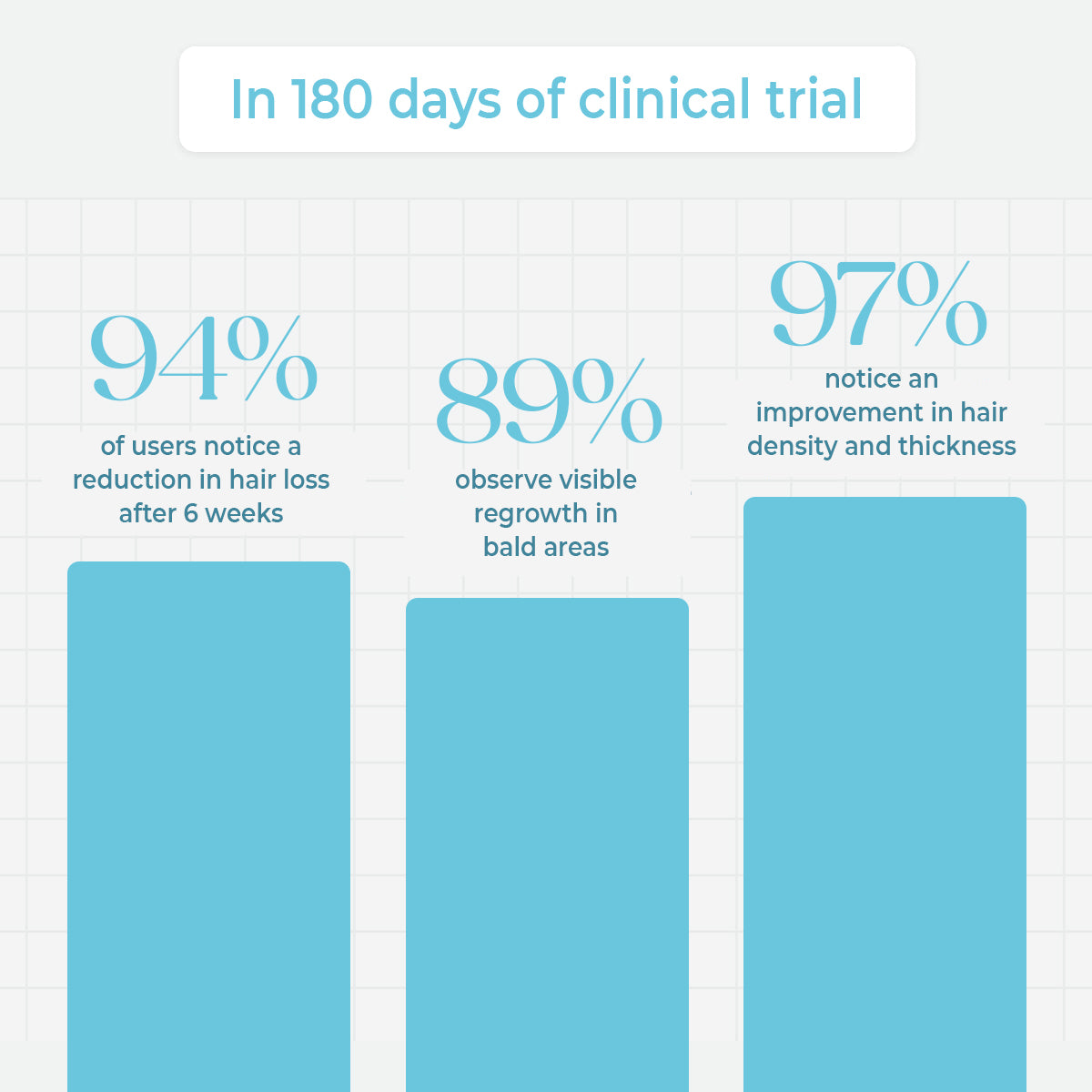 In a 120-day internal study conducted on 30 men and women, our activating serum showed that it can increase the proportion of hair in the growth phase and reduce the proportion in the shedding phase.